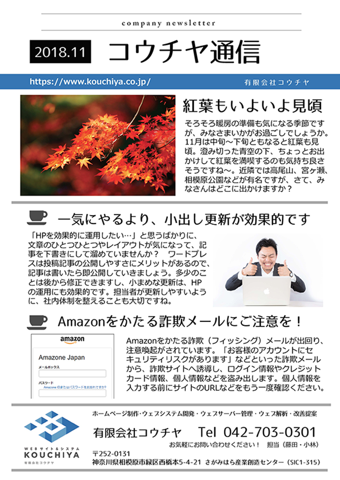 「コウチヤ通信」2018年11月号を発行しました